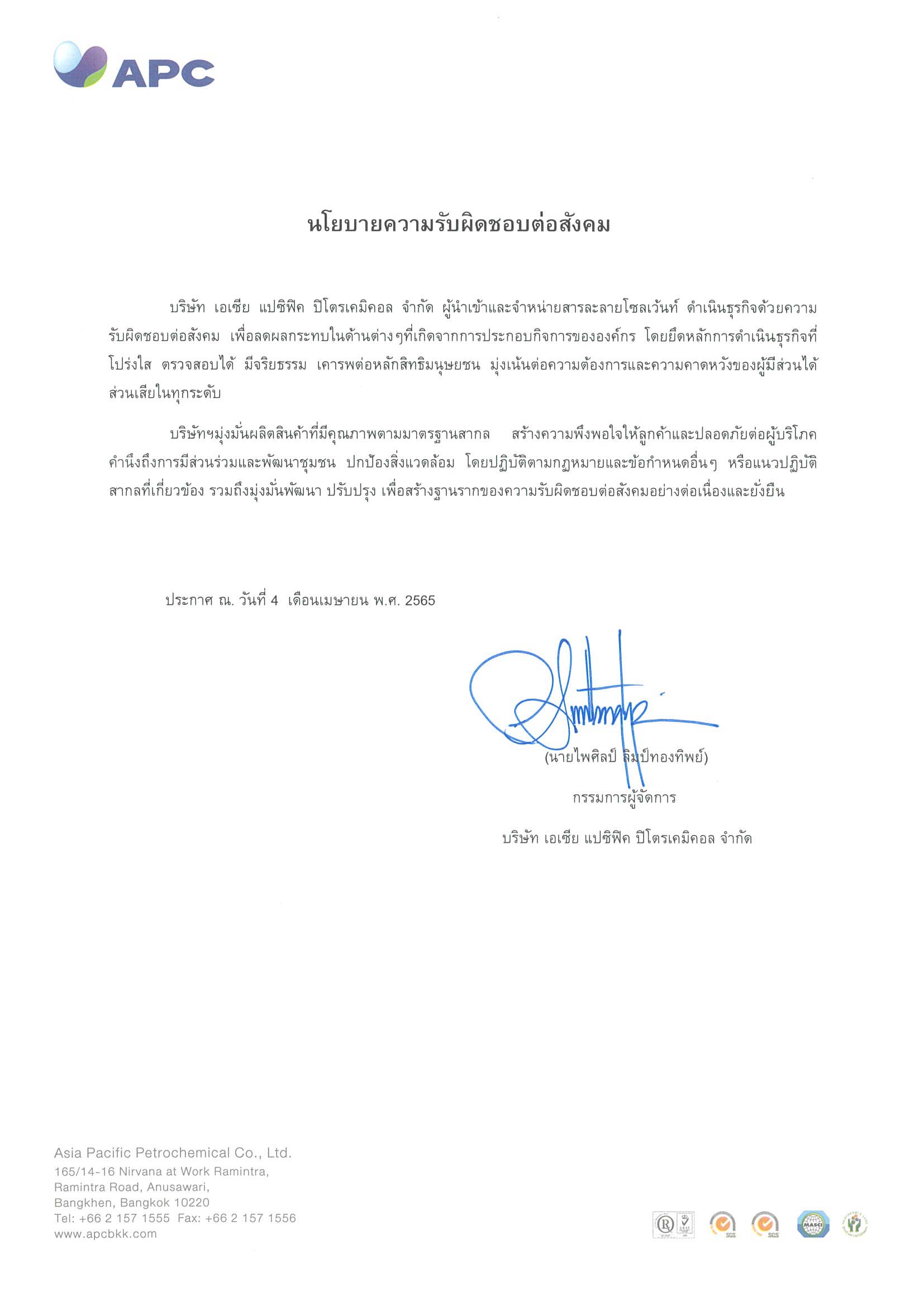 APC will be the leading chemical distribution in terms of future industry coverage and global responsibility in Thailand by 2028.